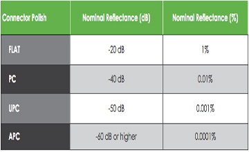 هر کانکتور فیبر نوری صفحه انتهایی متفاوتی را پشتیبانی می‌نماید. انواع صفحات پولیش به‌صورت PC (کانتکت فیزیکی)، UPC (کانتکت فیزیکی بالا) و APC (کانتکت فیزیکی زاویه‌ای) می‌باشد. در برخی از انواع کانکتور بسته به نوع کانتکت و همچنین نوع کانکتور رنگ‌بندی این تجهیزات نیز متفاوت خواهد بود.